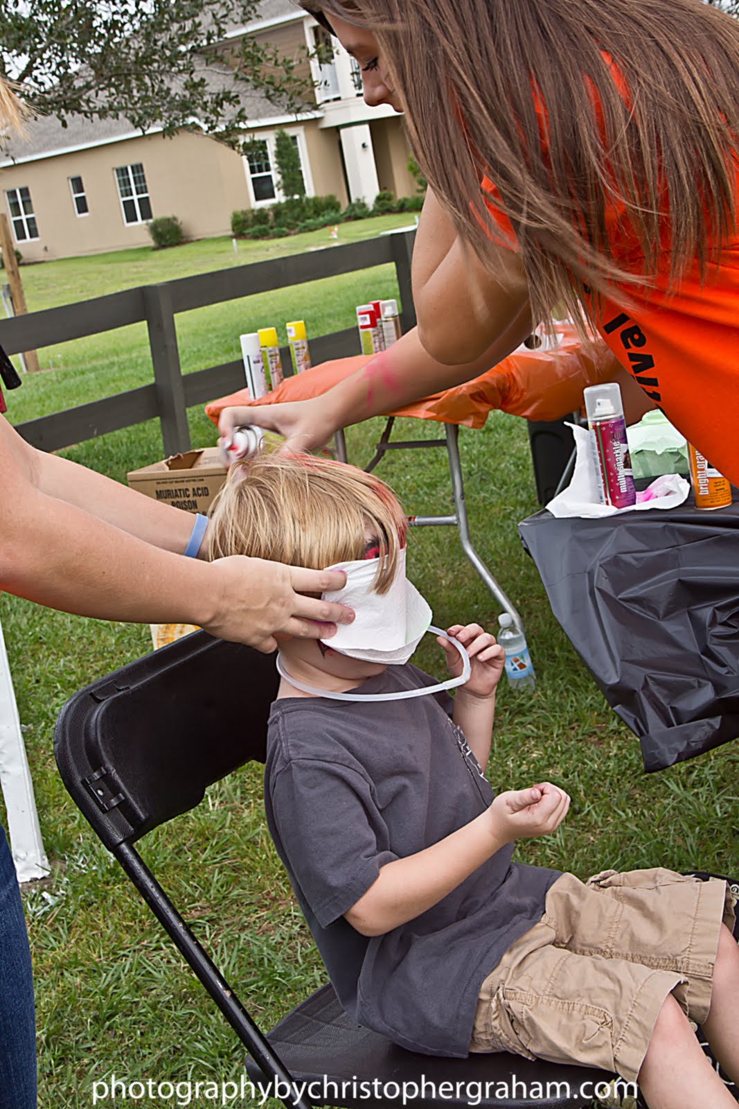 Once again Matthew surprised me by letting people spray paint his hair. I didn't think my super cautious son would go for it.